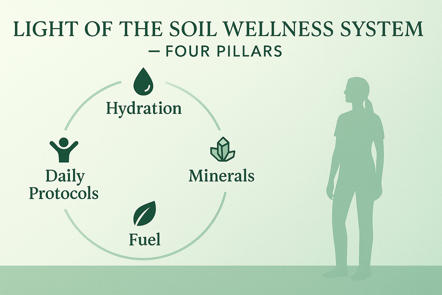 These four daily supports — Hydration, Minerals, Fuel, and Daily Protocols — form the core structure of the Light of the Soil Wellness System and help your inner soil feel grounded, energized, and steady.